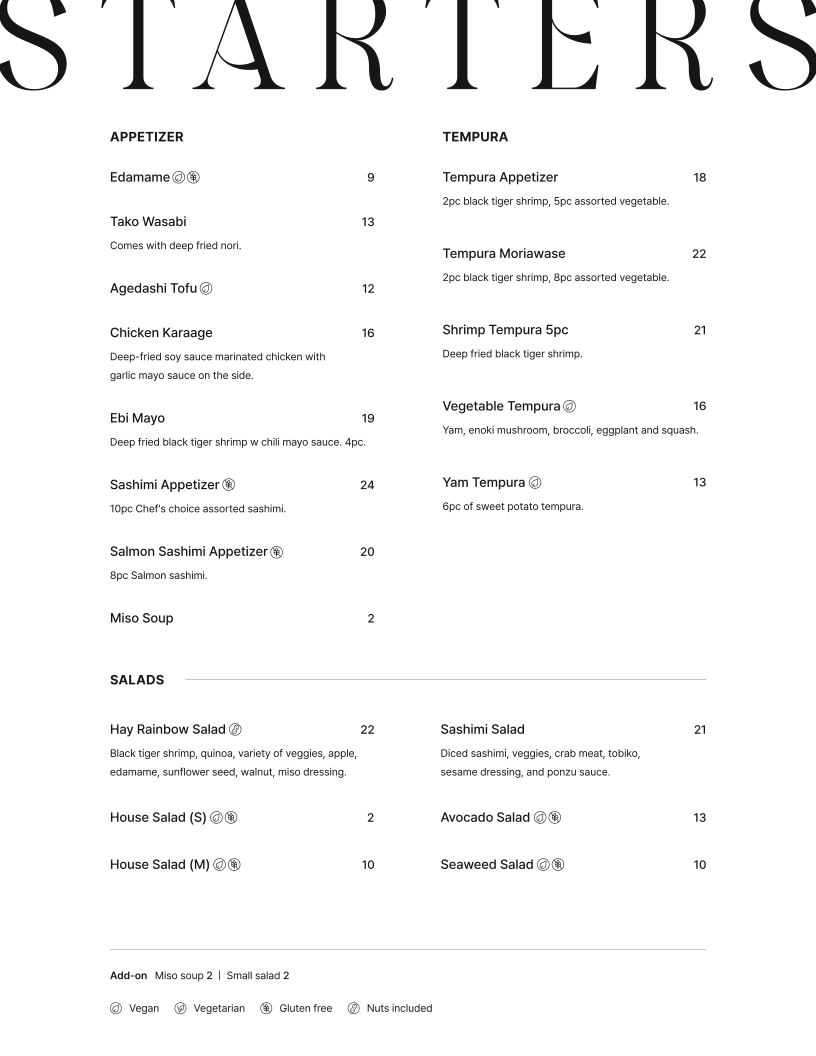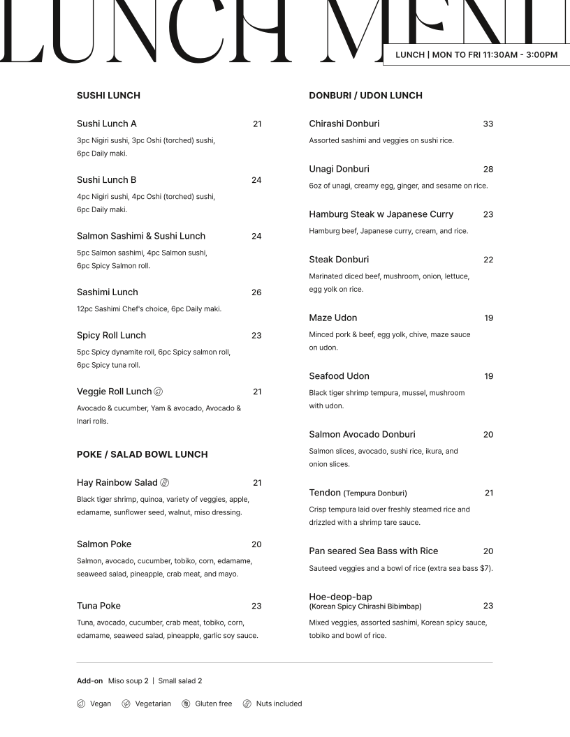 Hay Sushi - Spring Garden Menu